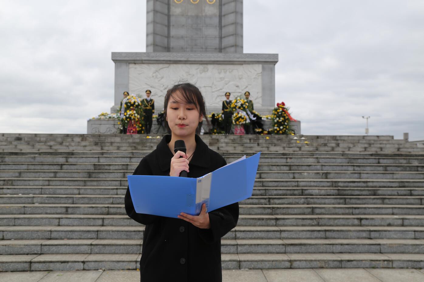 全体师生党员与入党积极分子向烈士纪念碑默哀以表哀思。
