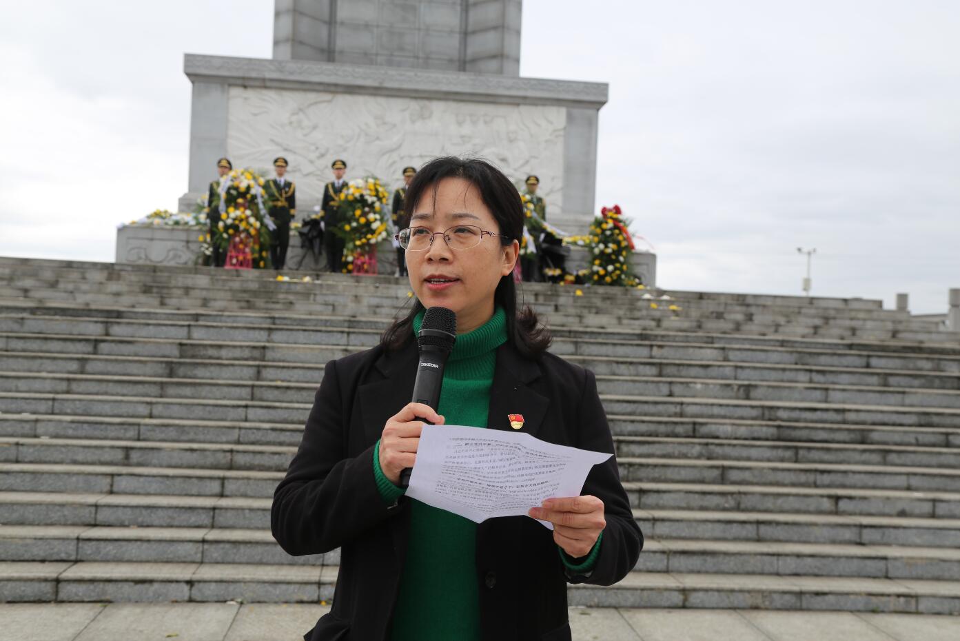 会计学二支部李霁作为学生党员代表讲述了“我的成长故事”。她从当过兵的外公和作为“国家螺丝钉”的父母给予自己的熏陶出发,讲述了自己在党的指引下一路走来的感悟,并发出了作为新时代青年应该“紧握时代接力棒,奋起奔跑”的号召。通过在烈士纪念碑下的故事分享,激励各位党员积极发挥党员的先锋模范作用,将个人的理想追求融入到党和国家的事业中,为党、为祖国、为人民多作贡献。