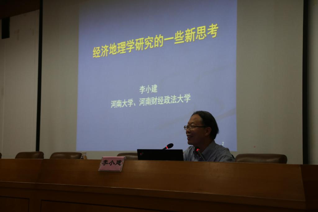报告会上,李小建教授讲述了经济地理学研究的四个方面看法。一是经济地理学与区域经济学、空间经济学的差距。李教授详细生动地讲解了三个学科之间的共同与差异。二是经济地理学研究的尺度问题。李教授强调经济理学研究的空间尺度和视角尺度,微观、宏观各有特点,突出微观不能忽视宏观。三是经济活动重返内陆时代。李教授运用生动形象的历史例子,预测沿海与内陆地区的经济集聚状况将会发生改变。四是城镇化进程中农村聚落的变化趋势。预测农村聚落将来可发展4种类型:专业化农业村、规模农业家庭居住村、旅游业专用村、居住型村落。