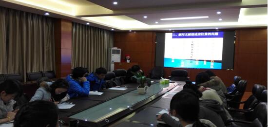 李老师在讲座中首先强调了学生与导师交流的重要性,指出,学生和导师的关系应当是亦师亦友,这样才能顺利地进行论文的写作。李老师对摘要和文献综述的写作提出了几点注意事项:首先要避免对论文内容加入评论和解释文题;其次,要注意语言要精简、逻辑性要强(文字简明扼要、采用直接表达的方法);写作的时候应当以第三人称写作,叙述要完整、短文结构要合理。最后总结了一下历届学生容易犯错的地方,使在坐的年轻学子能够避免出现同类错误。