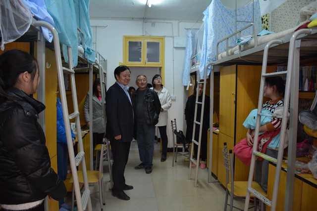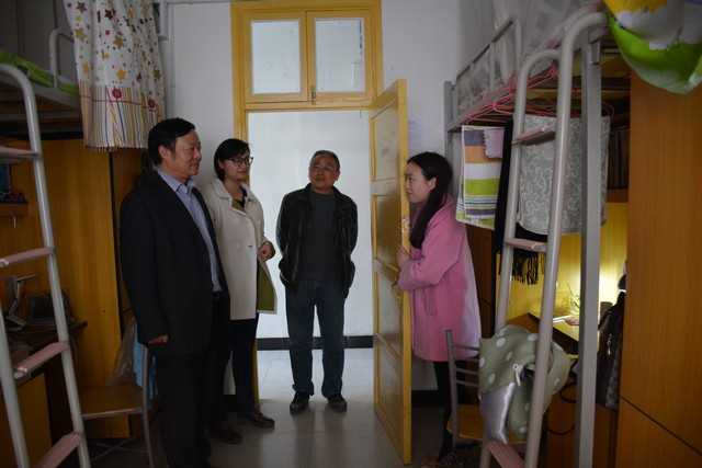 2016年2月28日下午,院党委书记黎克双、院党委副书记钟高峥带领院学工办主任胡锦湘、院团总支书记陈敏灵、学生辅导员陈洁、唐琪和团总支、学生会部分干部,来到砂子坳校区和大田湾校区学生寝室,亲切看望返校的学生。