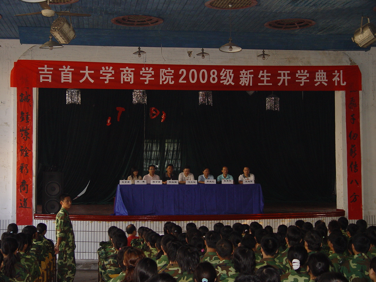 2008年9月13日上午,beat365在大田湾校区礼堂召开2008级本科新生开学典礼。院党总支副书记彭业锦主持大会,院长冷志明教授作了院情报告,副院长李政忙作入学教育,老师代表张霞、军训教官柴周兰、老生代表周雯琦、新生代表张雷先后发言。副院长蒋才芳及2008级各班主任参加了大会。随后专业负责人张寒阳、张霞、龙海军等老师分别给各专业新生进行了专业教育。