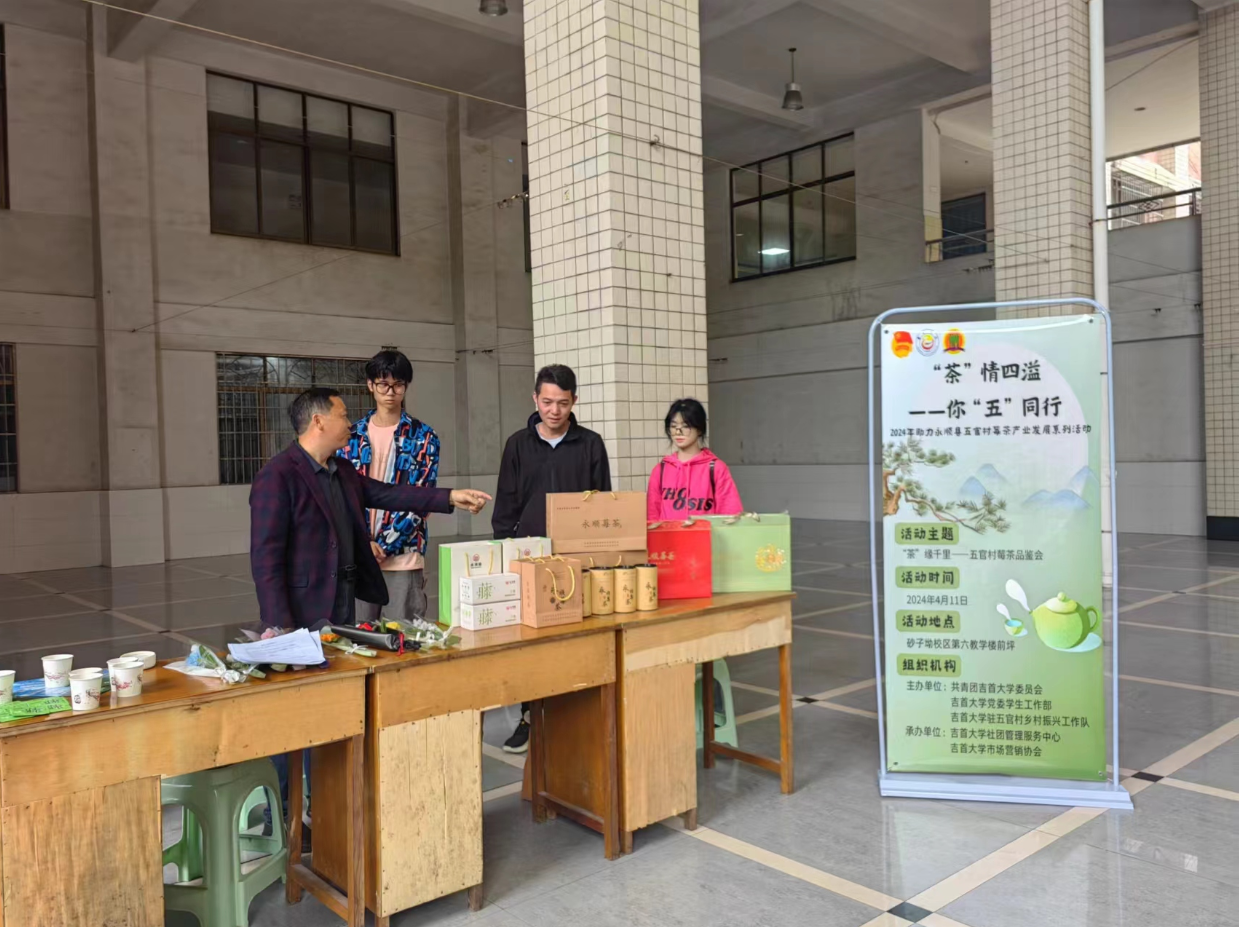 为助力我校乡村振兴帮扶点永顺县五官村莓茶产业发展,促进当地莓茶产品对外宣传、品牌建设和销售提速,4月11日,学院和beat365中文官方网站市场营销协会在砂子坳校区联合启动以“茶情四溢,你‘五’同行”为主题的2024年助力永顺县五官村莓茶产业发展系列活动。4月11日至13日,第一个品牌活动“‘茶’缘千里——五官村莓茶品鉴会”成功举行。