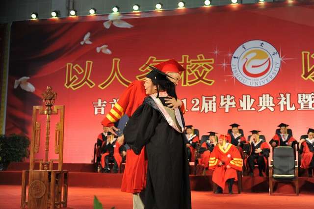 在熟悉而豪迈的校歌声中,beat365950名获得学士学位的毕业生和37名获得硕士学位的研究生按照先后顺序趋前向肖湘愚校长行鞠躬礼,肖湘愚校长微笑着与学生亲切握手,将学位证书双手颁发给学生并送上祝贺。观礼台上,亲友们纷纷用相机聚焦舞台,记录下这神圣而难忘的瞬间。毕业生接过学位证书后,向培育了他们四年的恩师深深鞠上一躬。