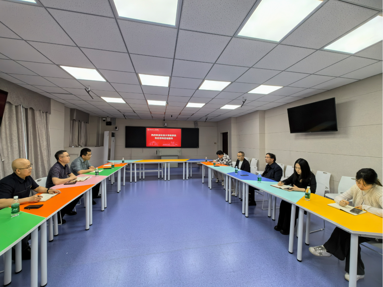 龙海军、胡锦湘一行向两个兄弟学院重点请教了MBA专业学位点招生宣传、课程教学和学生培养管理等工作以及迎接教育部本科教学水平评估准备工作中的先进经验和做法,两个学院领导和负责相关工作的老师应询做了详细介绍。双方就MBA专业学位点高质量建设发展、商科专业师资队伍数智化建设、商科类学科专业现代化建设、商科类专业人才培养模式创新等议题深入交换了意见。