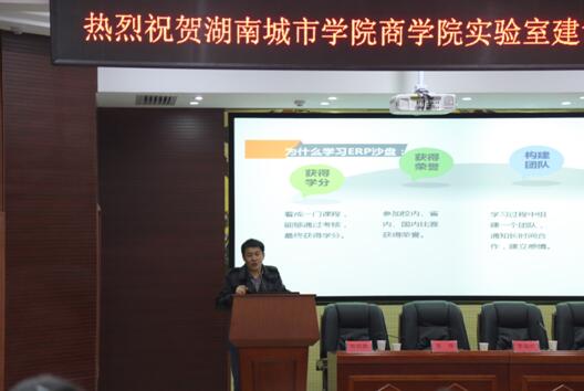 在湖南城市学院商学院实验室建设暨沙盘模拟学科竞赛学科竞赛专题学术讲座中,李政忙副院长就beat365中文官方网站实验室的发展历程和大文科实验室建设做了专题报告,以自己的切身体验从大文科实验教学的几个节点、跨专业岗位实训的介绍到大文科实训的未来展望,受到了现场师生的一致好评。