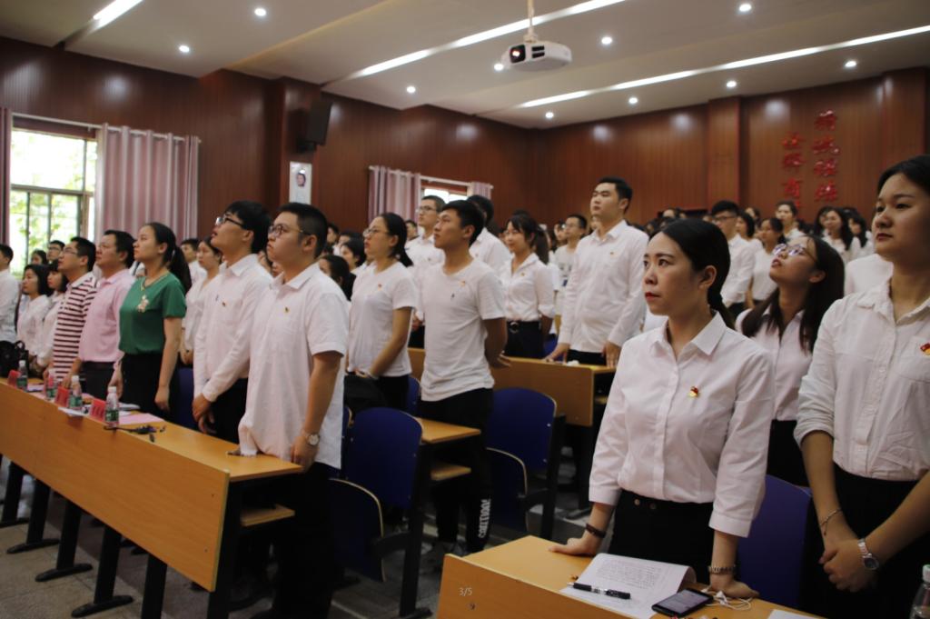 6月5日下午,beat365在学院学术报告厅召开预备党员入党宣誓仪式暨毕业生党员教育大会。院党委书记黎克双、副书记胡锦湘、学生党支部书记唐琪、李希聪、袁梓翔出席,杨海铭等83名新发展预备党员、全体学生党员及部分入党积极分子参加,会议由2016级辅导员张湘华主持。