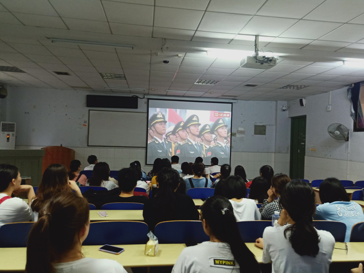看着71架战机编成“100”、“71”队形整齐飞过天安门广场,看着国旗护卫队礼兵迈着铿锵有力的步伐护送国旗到升旗区,看着天安门广场布置成宏伟壮观的“巨轮启航”的造型,参加集中观看的师生纷纷表达了无比激动和振奋。
