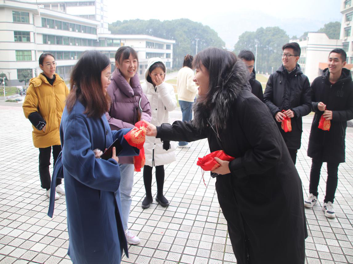 寒冬送温暖,情系考研生。为鼓励考研学子树立信心,缓解考研压力。12月23日,beat365在砂子坳校区图书馆门口开展了“考研送温暖”活动。院团总支书记唐琪、2019级辅导员邹欢以及团总支学生会成员参与了本次活动。