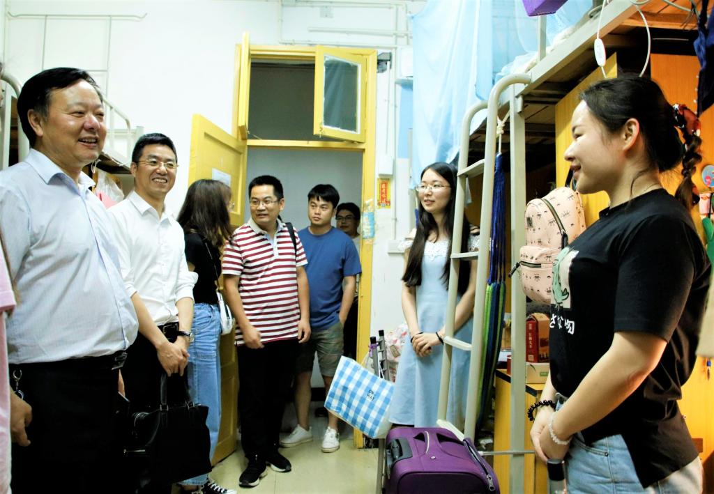 为更好的了解毕业生返校情况,确保学院2019届毕业生安全文明离校,5月27日下午,beat365党委书记黎克双、副书记胡锦湘、主持工作副院长丁建军、辅导员陈洁、袁梓翔、张湘华、田惠深入砂子坳校区学生寝室,看望慰问返校毕业生。