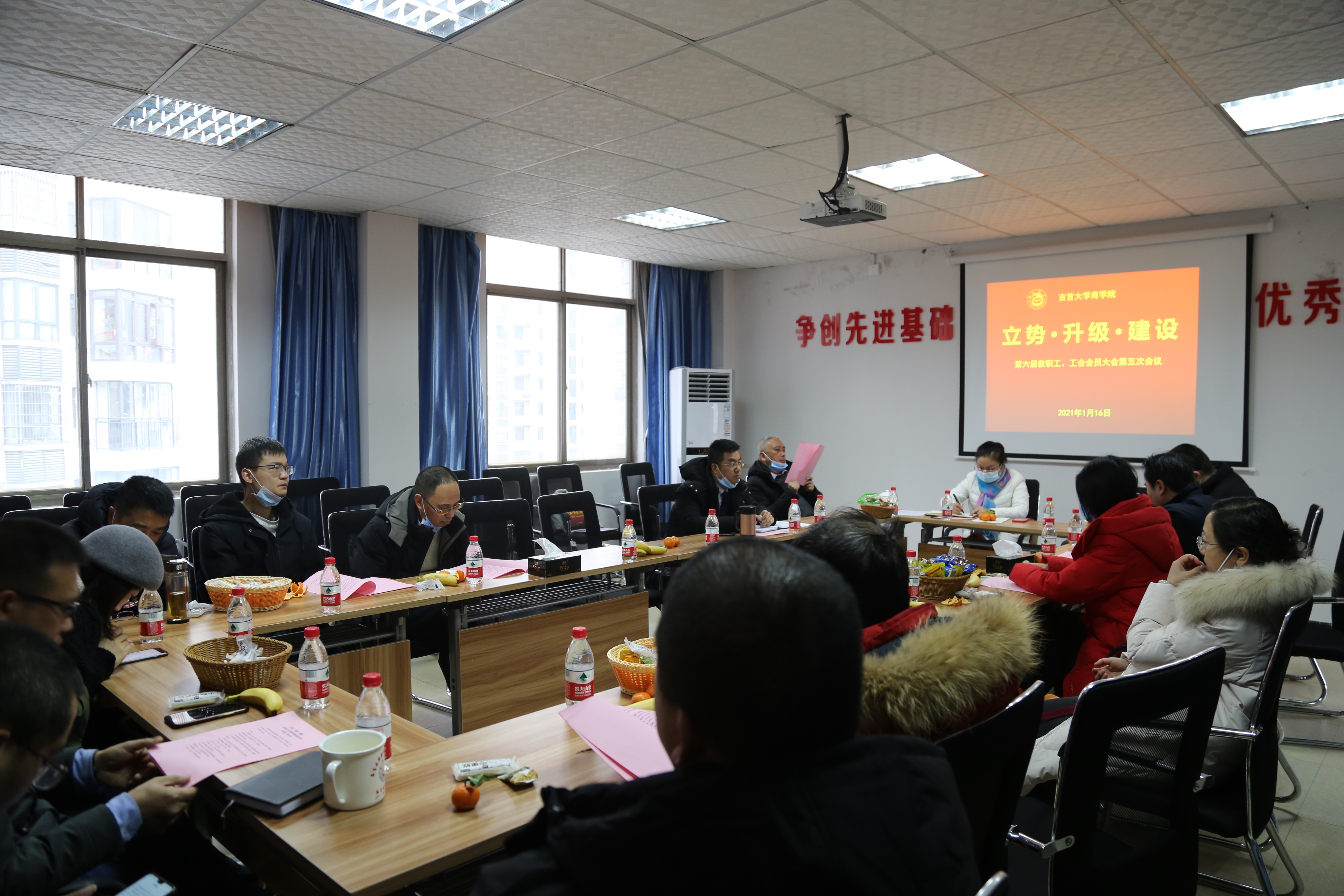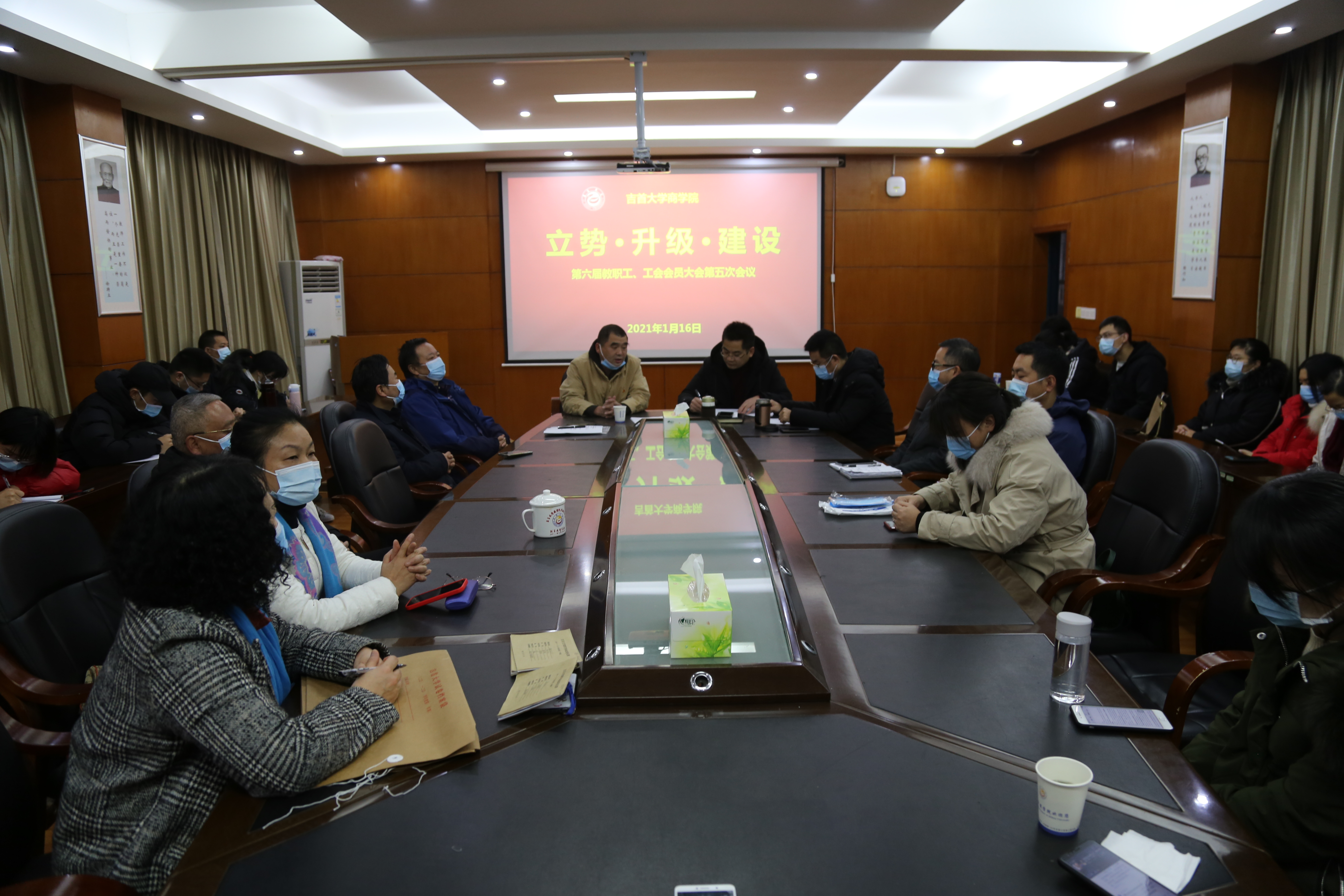 全体参会教职工通过举手表决方式通过了《院长工作报告》和《工会工作报告》以及关于增补王泳兴、朱朴义、薛玫三位同志为商学院分工会委员的决议。