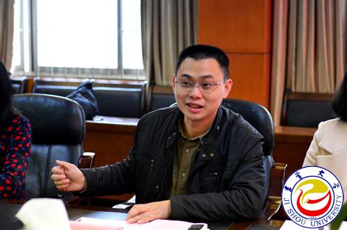 校长白晋湘致辞。他对郭昊、周尚文一行来校指导工作表示欢迎和感谢,并以党和国家领导人非常重视、拥有全国高校唯一的黄永玉艺术博物馆和沈从文纪念馆、国家社科基金排在全国前列这三大亮点,以拥有院士工作站、博士后流动站、服务国家特殊需求博士人才培养项目为代表的完整教学科研体系,入选中西部高校基础能力建设项目,服务武陵山区精准扶贫这三大标志,介绍了学校的基本情况。