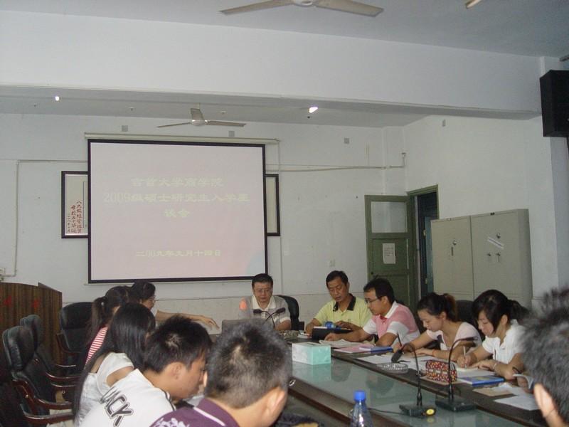 2009 年9月14日 上午,beat365在会议室召开了2009级硕士研究生入学座谈会,会议由蒋才芳副院长主持。蒋副院长介绍了学院的专业设置、学科发展、科研成果等基本情况,冷志明院长代表全院热烈欢迎2009级硕士研究生来院深造,并对他们的学习提出具体要求。学院党总支副书记彭业锦及2009级企业管理、产业经济学、中国少数民族经济40余名硕士研究生参加了座谈会。