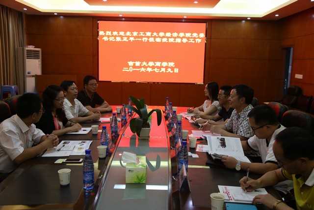 2016年7月9日,北京工商大学经济学院党委书记张正平率金融系主任李飞、工会主席向小平和湘西自治州州长助理、北京工商大学教授葛红玲,湘西自治州政府副秘书长彭佳等一行来beat365进行交流。