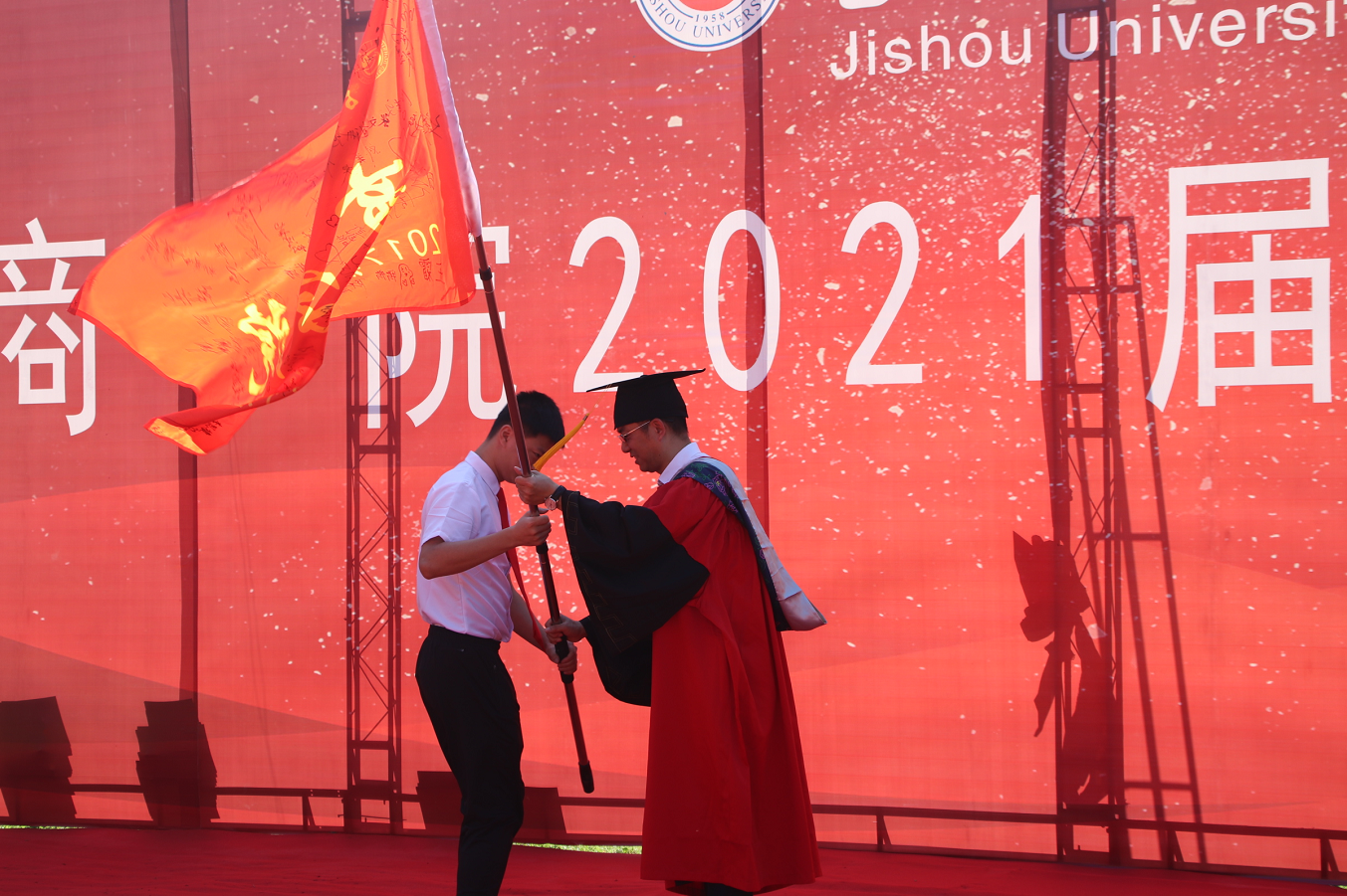 方东辉致毕业典礼致辞。他对学院2021届毕业生顺利毕业表示热烈祝贺,同时对大家寄予三点希望:一是牢记“精诚锤炼、诠释商道”的商院院训,将其内化于心,外化于行;二是牢记“空谈误国、实干兴邦”的励志寄语,立大志、明大德、成大才、担大任;三是牢记“坚守梦想、笃定前行”的人生信念,不忘初心,迎难而上,拥抱梦想,创造未来。