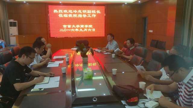 9月6日上午,副校长冷志明率保卫处处长郑昭信、科长刘梓缘一行到商学院检查指导“平安学院”建设工作。在院会议室,商学院党委书记黎克双、副书记钟高峥、副院长李政忙、实验室主任欧阳胜、学工办主任胡锦湘、办公室主任王泳兴热情接待了冷志明副校长一行。
