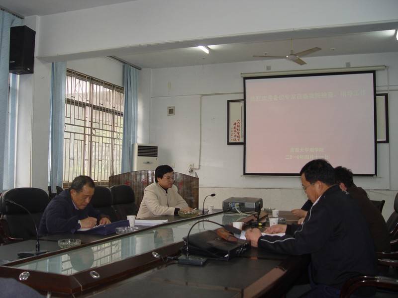 | 按照学校教务处2010届本科毕业论文工作安排,为确保本科毕业论文工作有序进行,4月12日,学校教学处实践科田春莲联合学校教学督导团专家石维海、姚金泉、田官平等一行四人来beat365进行2010届本科毕业论文中期检查,在院会议室,院长冷志明教授就beat3652010届本科毕业论文进展情况和学院对2010届本科毕业论文中期检查情况向专家组进行了汇报,随后,专家组抽查了beat3652010届本科毕业生毕业论文工作资料以及论文开题报告、论文指导书等相关资料。专家组对beat3652010届本科毕业生毕业论文工作的进展给予了充分地肯定,对beat365将论文开题报告和论文指导书进行计算机和网络集中管理给予了高度评价。院总支张生强书记参加了检查和汇报。