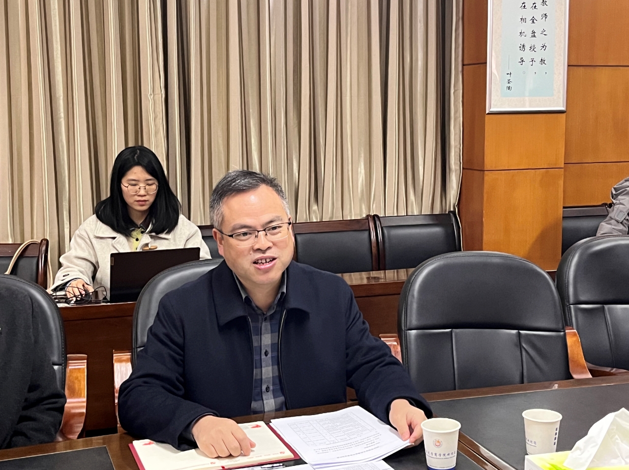 龙海军向姜又春副校长汇报了学院2024年度科研工作情况和取得的成果,并着重报告了学院2025年度国家课题申报准备工作和推进工作情况。