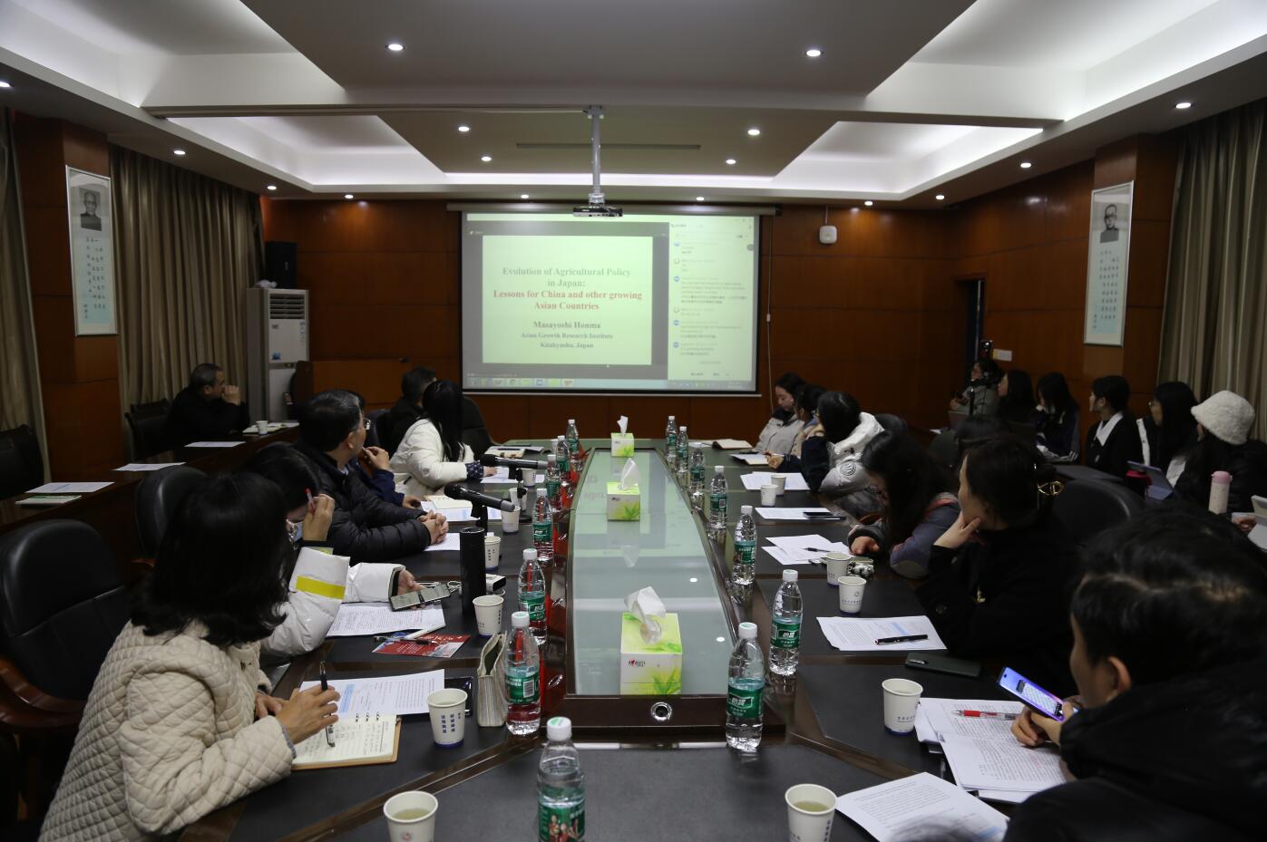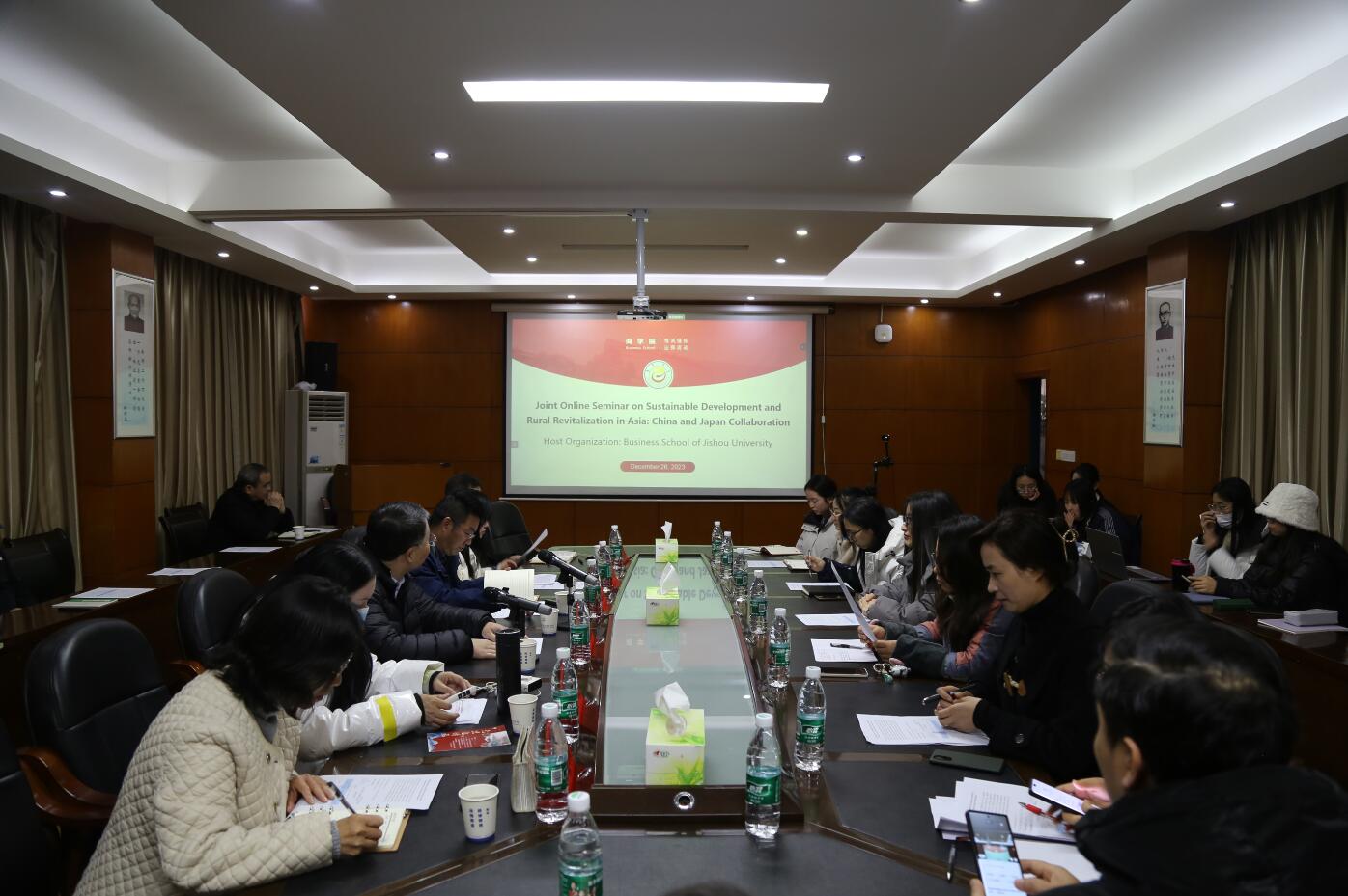 12月26日,由学院与日本亚洲成长研究所联合主办的主题为“Joint Online Seminar on Sustainable Development and RuralRevitalization in Asia: China and Japan Collaboration”国际学术会以线上线下相结合的形式举行。日本亚洲成长研究所所长Dai Erbiao教授,日本亚洲成长研究所特聘教授Homma Masayoshi博士,日本亚洲成长研究所助理教授Peng Xue博士,日本亚洲成长研究所助理教授komatsu sho博士以及beat365中文官方网站科研管理处处长汤自军,学院党委书记宋洁,院长丁建军,副院长龙海军,经济系主任李琼和学院青年教师、在校的研究生等参会。会议由学院在日本访学的殷强博士主持。